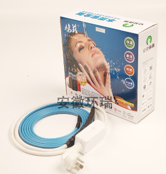安徽環瑞為了方便用戶安裝,更加提供一種無需自行接線的,可插式帶漏電保護器的自控溫發熱電纜,滿足8米以內的管道伴熱需求,具體產品如下圖:
