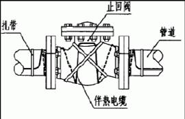 4)直線平行安裝時(shí),伴熱電纜應(yīng)沿彎頭凸面安裝,并在彎頭的兩端及中間作固定 |