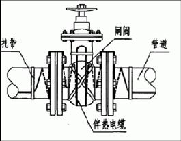 5、一切散熱體(如支架、閥門(mén)、法蘭等)應(yīng)按設(shè)計(jì)圖請(qǐng)求預(yù)留所需電伴熱帶長(zhǎng)度,將此段電伴熱帶纏繞于散熱主體上并固定。