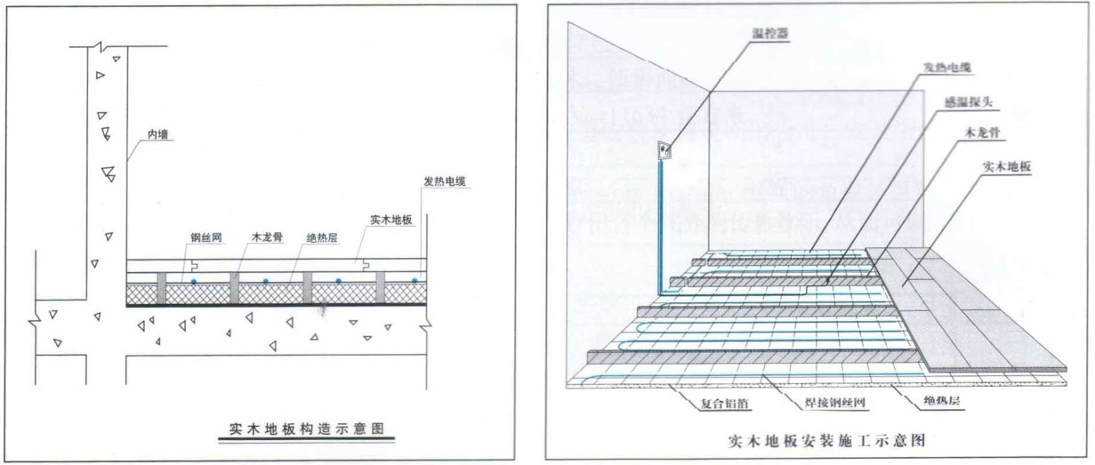 如采發熱電纜電地暖用地溫溫控器,應在安裝本地板的同時安裝地溫探頭。地溫探頭應安裝固定在木地板下表面,用膠帶、卡釘固定。如圖所示: