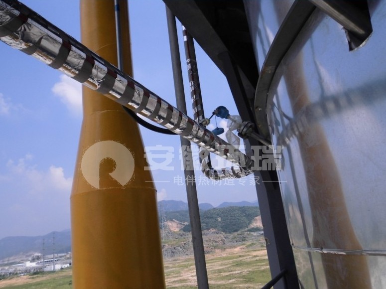 自限溫電伴熱帶可滿足不同伴熱體的安裝需要,實現自動控溫,具有安裝靈活,伴熱迅速等優點。此次長潤發涂料采用安徽環瑞中溫型自控溫電伴熱帶(它可保證其設備的維持溫度在40-80℃),MI電纜(維持溫度100℃以上)用于漏斗,管道罐體,法蘭螺栓,儀表等保溫,加熱。