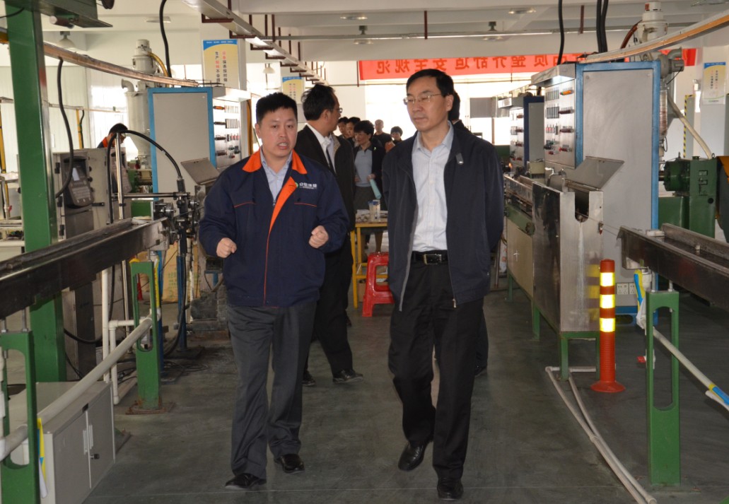 合肥副市長吳建國一行人參觀我司電熱帶生產(chǎn)線