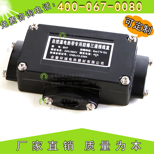 電伴熱帶產(chǎn)品接線盒分為電源接線盒,二通接線盒,三通接線盒及尾端接線盒等。電源接線盒是電伴熱帶與電源線之間起到連接而所使用的,再者就是二通接線盒與三通接線盒,這兩種接線盒在電伴熱系統(tǒng)里統(tǒng)稱中間接線盒,是用于電伴熱帶與電伴熱帶之間的連接樞紐,一個是直通型連接另一個是岔口型連接而已,而尾端接線盒是作為電伴熱系統(tǒng)中用于密封電伴熱帶尾部的一個配件。 對于一些復雜的管道諸如閥門等,這些管道較為復雜,管道的交叉不連續(xù)導致在安裝伴熱帶時無法正常連接,因此在這些區(qū)域需要使用二通或三通接線盒進行連接。 二通接線盒是滿足電伴熱帶在使用長度以內(nèi)的連接,讓電伴熱帶的使用變得更為簡單,一般是采用硅膠來密封,固定件均為不銹鋼件。對于用戶在復雜性區(qū)域內(nèi)使用接線盒時可以將伴熱帶截斷,在閥門槽池處用接線盒進行連接,具有方便安全的功效,因此電伴熱帶在連接時必有要使用線盒,它能讓用戶可以放心使用。